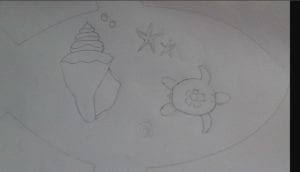 For art we have been doing a draft piece of art in are topic book. The art is a wooden fish that we are going to paint. Before we can do that we have to finish are draft and put patterns on it.